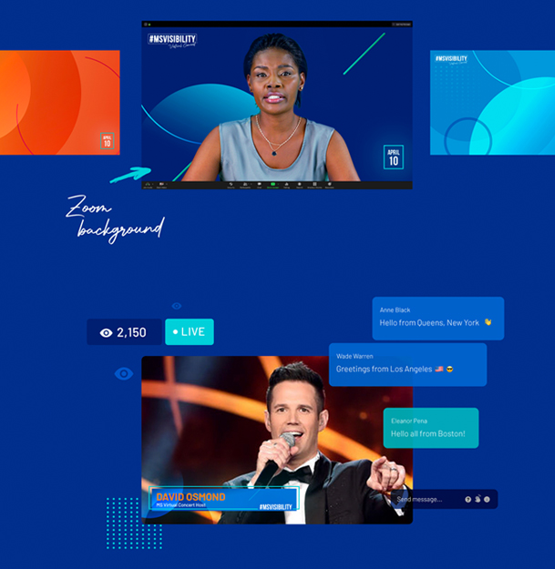 As a sponsor and supporter of the Multiple Sclerosis (MS) community Genentech wanted to continue to connect with patients, caregivers and families during the pandemic. The team created a virtual concert experience that allowed invited guests to login, launch video and experience an inspirational show that included celebrity actors, musicians and the groups that support this disease.