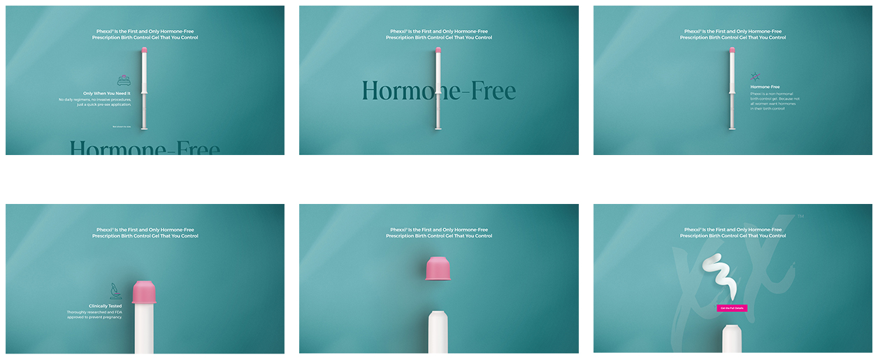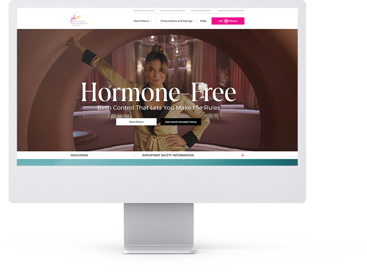 A product of Evofem Biosciences, Phexxi is the only hormone-free birth control and was introducing a new consumer campaign highlighted by a commercial with celebrity Annie Murphy. Site was built with flexibility to exist beyond initial campaign as primary consumer destination and included micro engagements through clickable content as well as a user controlled animated sequence of the device and its benefits.